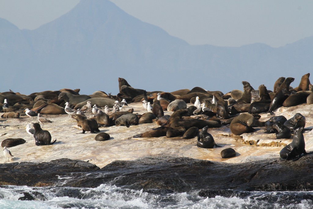 Halte déjeuner en terrasse avec poisson et crevettes au menu, puis c’est reparti pour un tour à l’ïle aux phoques… Environ 50.000 au pic de la saison, ils viennent se reproduire. Quelques guerres de périmètre en effet, quelques copulations… c’est la saison des amours !